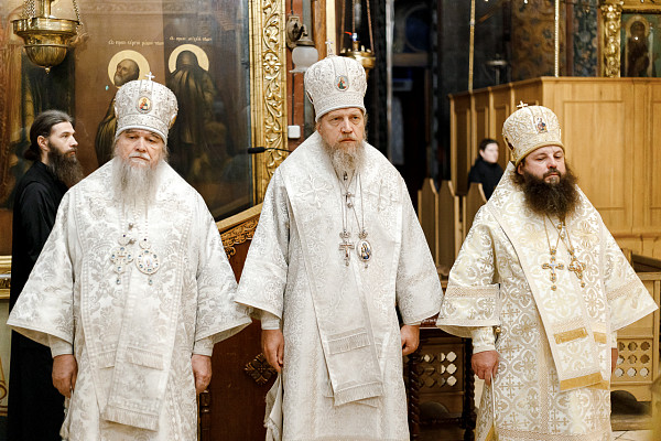 Высокопреосвященному владыке сослужили: архиепископ Салехардский и Ново-Уренгойский Николай; архиепископ Петропавловский и Камчатский Феодор; архиепископ Воркутинский и Усинский Марк; архиепископ Анадырский и Чукотский Ипатий; епископ Рыбинский и Романово-Борисоглебский Вениамин; епископ Кинешемский и Палехский Иларион; епископ Шуйский и Тейковский Иоанн; епископ Ахтубинский и Енотаевский Матфей.