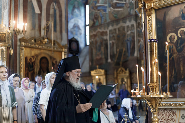 Всенощное бдение в Успенском соборе возглавил архимандрит Варфоломей (Калугин), Божественную литургию — архимандрит Иеремия (Соловьёв).