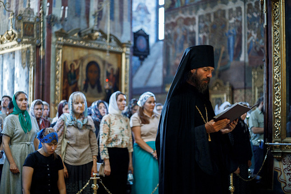 Всенощное бдение в Успенском соборе возглавил архимандрит Павел (Кривоногов). За вечерним богослужением духовенство прочитало акафист преподобному Серафиму Саровскому.