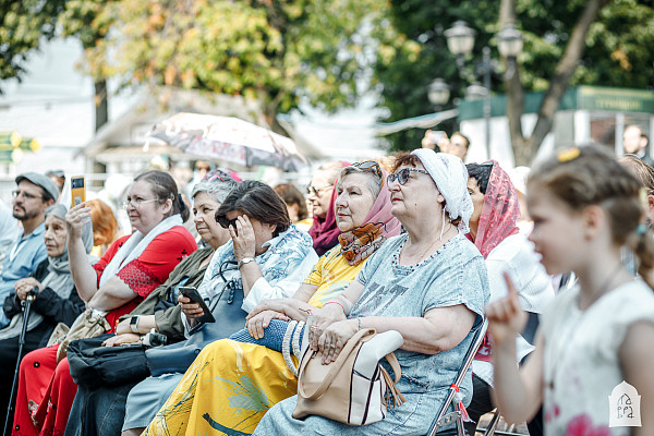 Перед открытием фестиваля Святейший Патриарх Московский и всея Руси Кирилл совершил Божественную литургию на Соборной площади Свято-Троицкой Сергиевой Лавры.