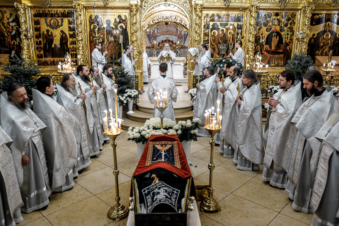 Заупокойную Литургию совершили председатель Синодального отдела по монастырям и монашеству митрополит Каширский Феогност и епископ Городецкий и Ветлужский Парамон.