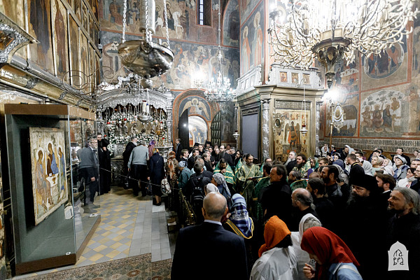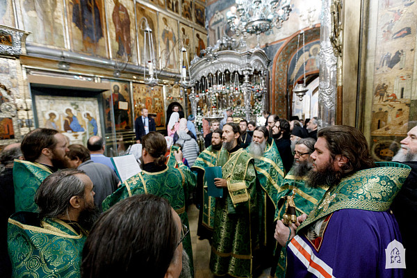Перед возвращением иконы наместник Лавры епископ Сергиево-Посадский и Дмитровский Фома совершил молебен в Троицком соборе.