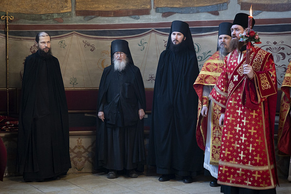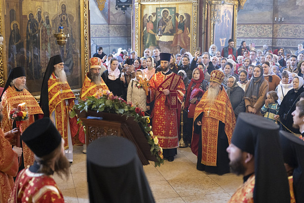 Позднюю Литургию в Успенском соборе Лавры возглавил архимандрит Дорофей (Островский). За богослужением пел хор под управлением Евгения Боровинского.