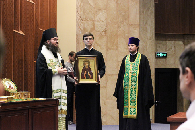 Он поблагодарил Святейшего Патриарха Кирилла и епископа Сергиево-Посадского и Дмитровского Фому за благословение и участие в принесении великой святыни — мощей преподобного Сергия.