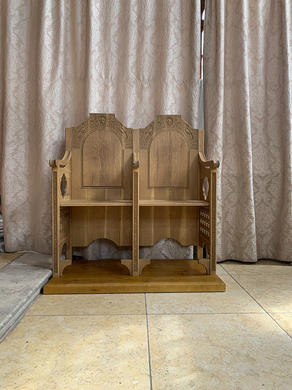 Великим постом 2020 года мастерские Троице-Сергиевой Лавры начали работу над изготовлением стасидий для Успенского собора Лавры. Традиционные стасидии – это стулья с высокой спинкой, которые помогают монахам во время многочасовых богослужений.