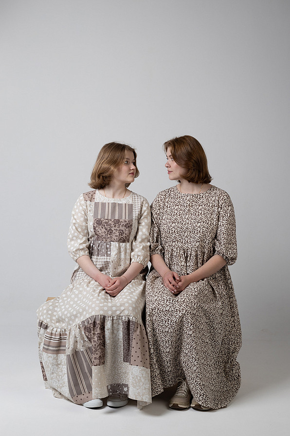 Платья, сарафаны, блузки и мужские косоворотки сшиты из натуральных тканей: льна и хлопка. Эти материалы не вызывают аллергию, обладают прекрасной воздухопроницаемостью и антибактериальным эффектом, позволяют коже «дышать». Кроме того, натуральные материалы экологичны и легко перерабатываются.