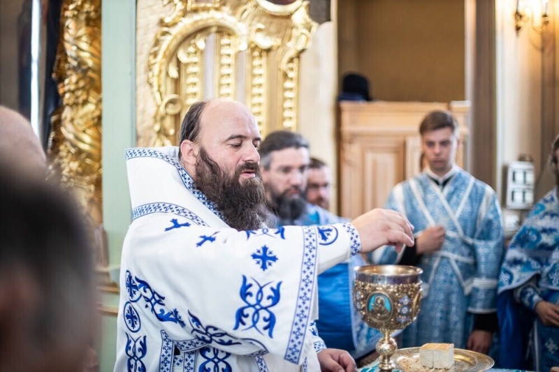 Божественную литургию в Смоленском храме совершил наместник обители епископ Сергиево-Посадский Парамон.