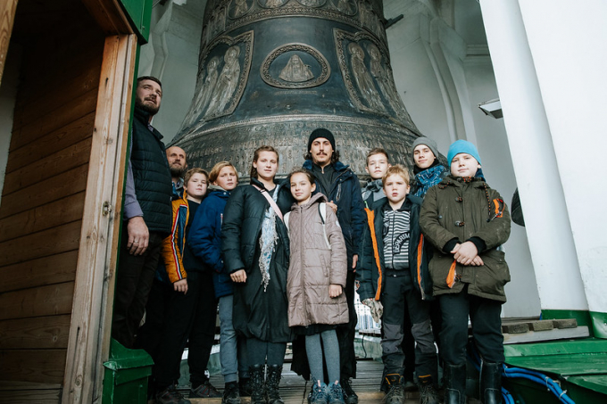 «Какие стены! Смотри, какие они толстые!» — чуть ли не хором воскликнули они. Однако как только ребята поднялись на первый ярус колокольни, где находится «Царь-колокол» их восторг стал еще сильнее. Слушая экскурсовода и прикидывая в уме, сколько это — 72 тонны, мальчики пытались хотя бы немного сдвинуть величественный язык «Царя», в то время как девочки смотрели на открывшийся захватывающий вид Лавры с высоты птичьего полета. Затем, наполненные новыми впечатлениями, дети спустились вниз, не переставая удивляться увиденному и пережитому за все дни их путешествия.