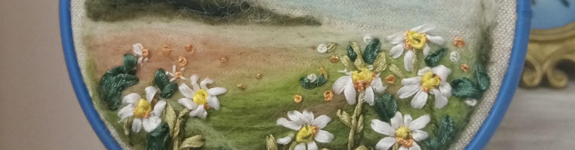 Вышивка лентами красива и проста в исполнении, а добавление элементов валяния окрашенной качественной шерстью делают работы настоящим живописным полотном, особенно хорошо смотрится данная комбинированная техника при создании пейзажей, которые получаются яркими, солнечными, летними. Начинающие мастерицы, познакомившись с таим видом рукоделия, с легкостью смогут украсить дом настоящими произведениями искусства.