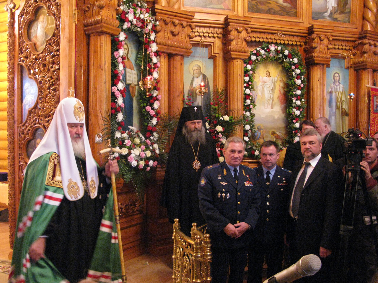 «Дорогие отцы, братья и сестры! — обратился Предстоятель к молящимся. — Храмы строятся не потому, что кому-то просто захотелось их построить... Храмы строятся потому, что в них есть потребность... Святые отцы, толкователи библейских текстов, единодушно утверждают, что под словом “земля” следует подразумевать весь тварный космос, всю Вселенную. Значит, Господь поставил перед нами цель — наполнять и планету нашу, и всю Вселенную и обладать ею. Поэтому стремление человека подняться к звездам — не блажь, не фантазия, не мода, а некая программа, заложенная Богом в человеческую природу... Вот почему так важен храм в Звездном городке — чтобы каждый, кто отправляется в космос, понимал, что это не просто работа, а нечто особенное. Так что же такое храм? Мы знаем, что у ученых есть своя картина мира. Рисуя эту картину, они используют такие понятия, как время, пространство, масса, энергия. Храм тоже есть образ мира, но здесь иные понятия — смысл и предназначение. И если научную картину мира соединить с той, которая дается человеку через общение с Богом, тогда и устрояется гармония жизни, тот взгляд на мир, на человека, на космос, который является истинным. А для того, чтобы не было никаких перекосов в сознании современных людей, работающих на переднем крае научных достижений, так важно, чтобы у них была возможность прийти в храм и подумать о смысле и предназначении — и собственной жизни, и своей работы, и Вселенной. Пусть в этом храме всегда совершается горячая молитва, особенно за тех, кто в космосе, за их близких и родных, которые остаются на земле и для которых каждый день — это время особых переживаний. Эта духовная поддержка нужна и тем, кто летает, и тем, кто остается на земле, а также их товарищам, коллегам, создателям этой сложнейшей техники».