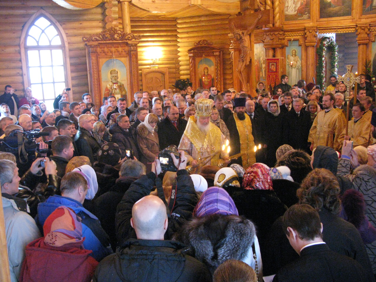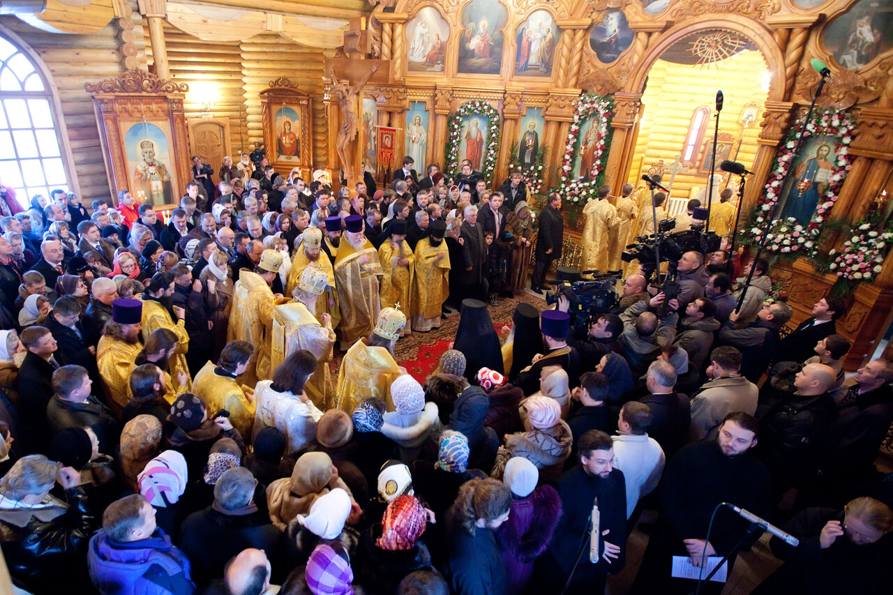 В день освящения храма 28 ноября 2010 года Святейшему Патриарху сослужили председатель Синодальной комиссии по делам монастырей[1] архиепископ Сергиево-Посадский Феогност, руководитель Административного секретариата Московской Патриархии епископ Солнечногорский Сергий, благочинный Свято-Троицкой Сергиевой Лавры архимандрит Павел (Кривоногов), председатель Синодального отдела по взаимодействию с Вооруженными силами и правоохранительными органами протоиерей Дмитрий Смирнов, секретарь Патриарха по городу Москве протоиерей Владимир Диваков, настоятель храма Преображения Господня в Звездном городке — насельник Свято-Троицкой Сергиевой Лавры игумен Иов (Талац) и другие священнослужители. На Литургии молились космонавты: Валентина Терешкова, Алексей Леонов, Александр и Сергей Волковы, Виктор Горбатко, Сергей Крикалев, Александр Викторенко, Владимир Джанибеков, Сергей Залетин, Федор Юрчихин, Максим Сураев, Виктор Савиных, Василий Циблиев, Юрий Гидзенко, Владимир Титов, Михаил Корниенко, Юрий Лончаков; племянница первого космонавта Тамара Филатова; руководитель Роскосмоса Анатолий Перминов; заместитель руководителя Роскосмоса Виталий Давыдов; начальник управления пилотируемых программ Алексей Краснов; генеральный директор АО «ЦЭНКИ» Александр Фадеев; первый вице-президент РКК «Энергия» Александр Стрекалов; заместитель руководителя ОКБ НПО имени С. А. Лавочкина Александр Моишеев; директор Мемориального дома-музея академика С. П. Королева Лариса Филатова; глава Звездного городка Николай Рыбкин. Всего молящихся было около 400 человек.