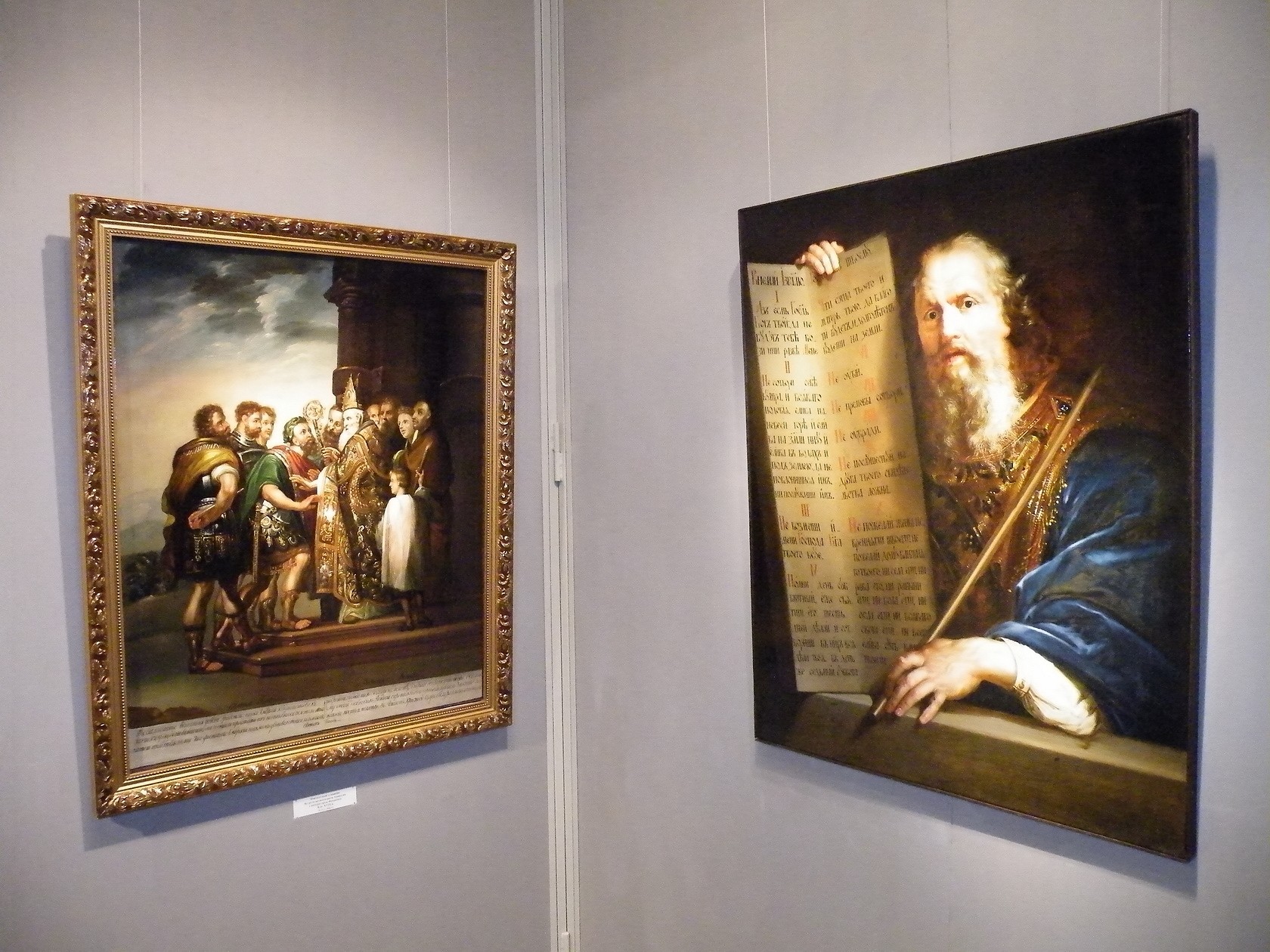 В экспозиции выставки в основном преобладает портретная живопись. Есть портреты российских императоров, членов императорской семьи и церковных иерархов. Один из разделов посвящен религиозной живописи. Часть картин для этого раздела была передана музею из митрополичьих покоев, царских чертогов, наместничьих покоев, казначейского корпуса и ризницы Свято-Троицкой Сергиевой Лавры. Здесь можно увидеть картины, недавно вышедшие из реставрации. Привлекают внимание портреты митрополита Платона (Левшина), митрополита Филарета (Дроздова), князя Голицына, который возглавлял Святейший Синод при императоре Александре I. Полотно под названием «Встреча архимандрита Амвросия с императором Феодосием» с изображением редкого сюжета из жизни Рима IV века было недавно отреставрировано художником-реставратором, насельником Свято-Троицкой Сергиевой Лавры отцом Дорофеем. Эта картина повторяет сюжет гравюры Рубенса «Святой Амвросий и император Феодосий». Небольшой этюд Алексея Саврасова и портрет «Мальчик в бескозырке» Виктора Мэя тоже подготовлены для экспозиции отцом Дорофеем.
