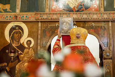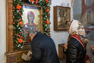 10 ноября, в праздник великомученицы Параскевы, на Пятницком подворье Лавры совершили праздничные богослужения, которые возглавил архимандрит Иеремия (Соловьев).