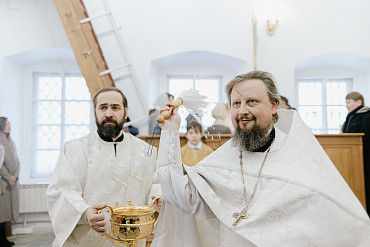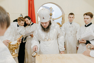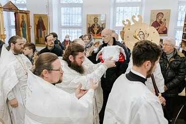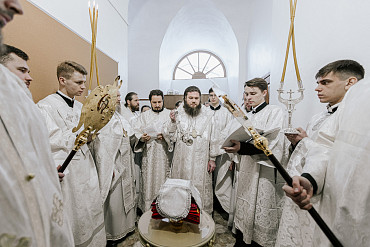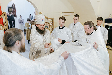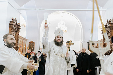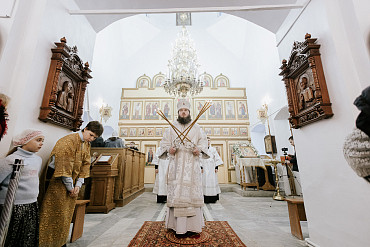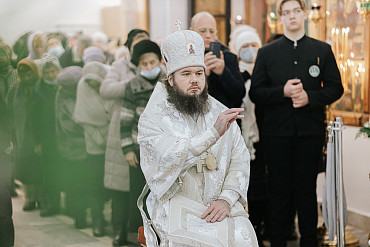 30 декабря епископ Сергиево-Посадский и Дмитровский Фома совершил чин Великого освящения и Божественную литургию в храме в честь Покрова Пресвятой Богородицы села Сватково.
