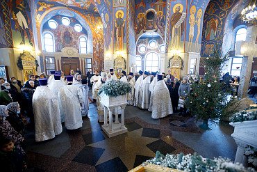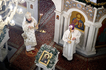 11 января епископ Сергиево-Посадский и Дмитровский Фома совершил Божественную литургия в храме Рождества Христова г. Мытищи.