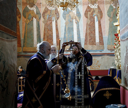 Великое повечерие с чтением канона Андрея Критского в Успенском соборе г. Сергиева Посада