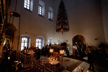 9 марта в Успенском кафедральном соборе Сергиева Посада прошло великое повечерие с чтением канона прп. Андрея Критского. Богослужение совершил епископ Сергиево-Посадский и Дмитровский Фома.