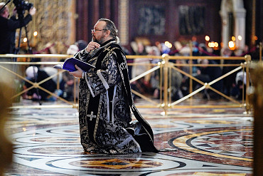 Патриаршее служение в пятницу первой седмицы Великого поста. Литургия Преждеосвященных Даров в Храме Христа Спасителя