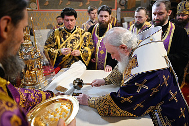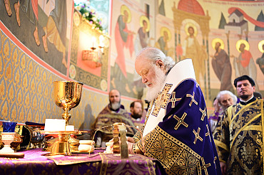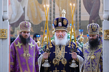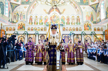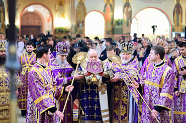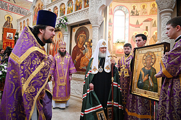 В Неделю 3-ю Великого поста наместник Лавры сослужил Святейшему Патриарху Кириллу