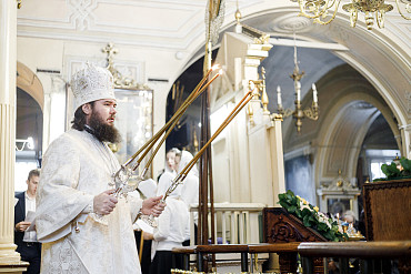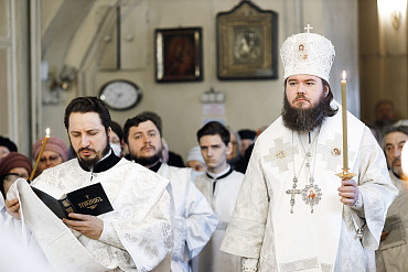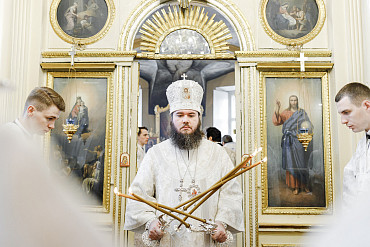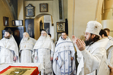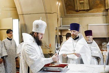 11 апреля управляющий Сергиево-Посадской епархией Преосвященный Фома совершил Литургию святителя Иоанна Златоуста и отпевание протоиерея Александра в храме Косьмы и Дамиана г. Королёва.