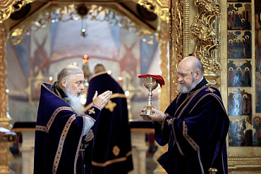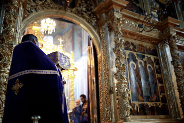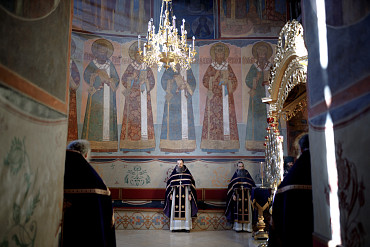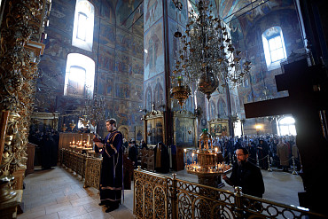 19 и 20 апреля в Лавре прошли богослужения Великой Среды. Вечернее богослужение и Литургию Преждеосвященных Даров в Успенском соборе Лавры возглавил архимандрит Иеремия (Соловьёв).