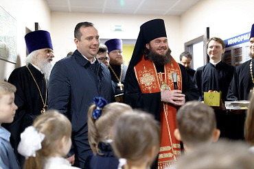 18 мая епископ Сергиево-Посадский и Дмитровский Фома совершил Божественную литургию в Троицком храме г. Королёва и принял участие в открытии православной гимназии «Восхождение».