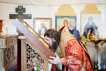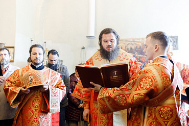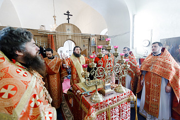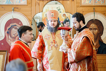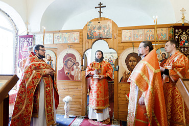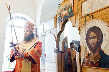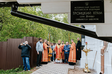 29 мая епископ Сергиево-Посадский и Дмитровский Фома совершил Литургию в храме Живоначальной Троицы в деревне Драчёво.