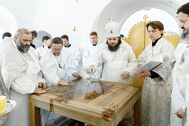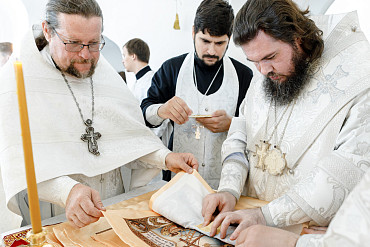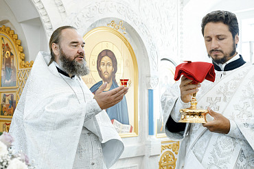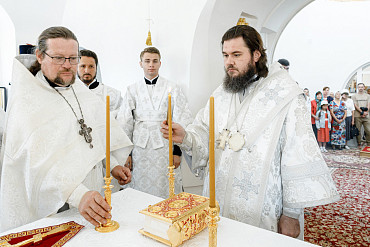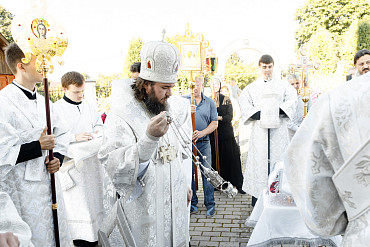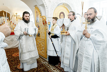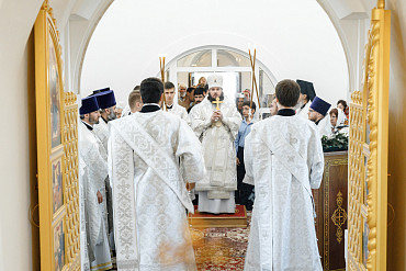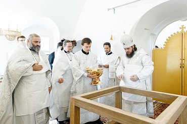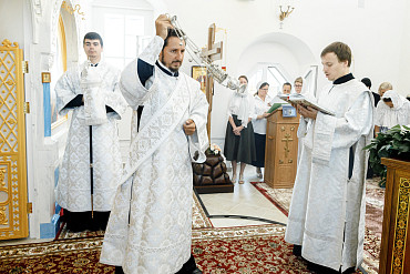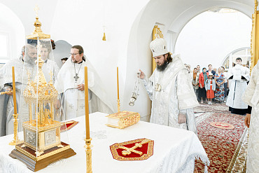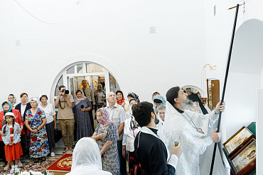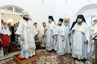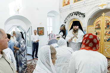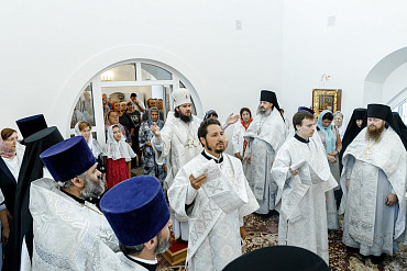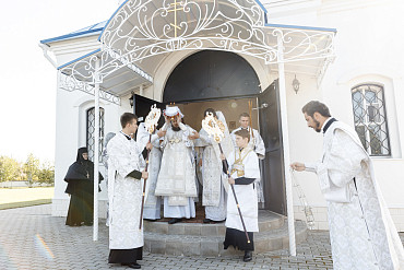 15 августа епископ Сергиево-Посадский и Дмитровский Фома совершил Великое освящение храма в честь Покрова Пресвятой Богородицы в д. Новокарцево Дмитровского городского округа — подворья Спасо-Влахернского женского монастыря в п. Деденево.