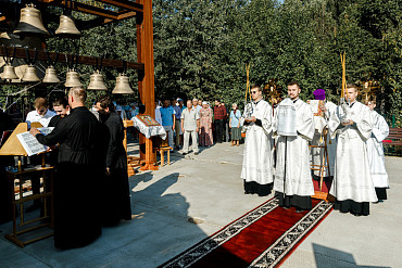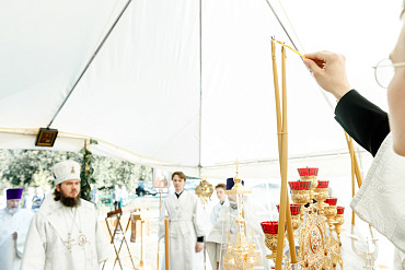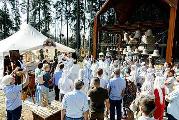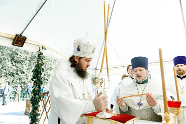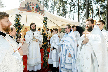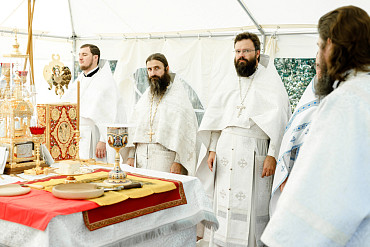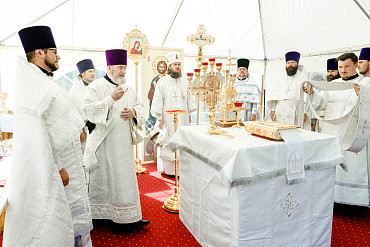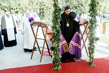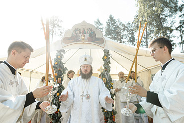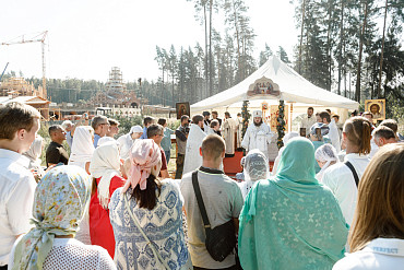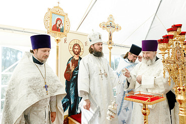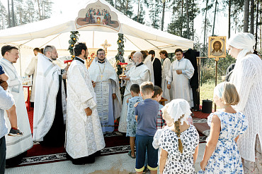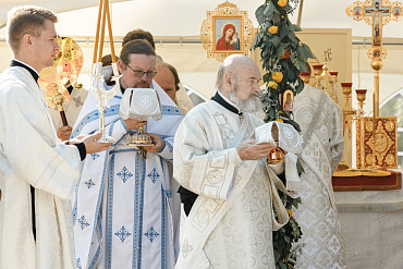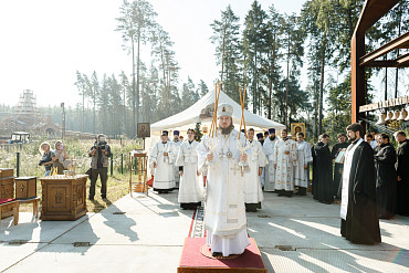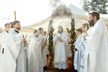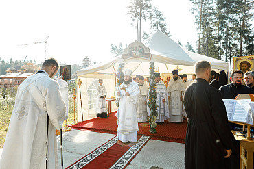 25 августа епископ Фома совершил первую Литургию на территории строящегося Покровского храма в д. Пирогово Мытищинского городского округа Московской области.