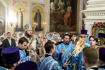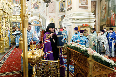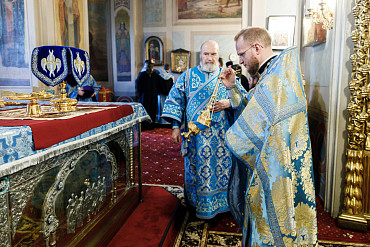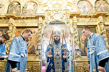 29 августа епископ Сергиево-Посадский и Дмитровский Фома совершил Божественную литургию в Успенском кафедральном соборе г. Дмитрова.