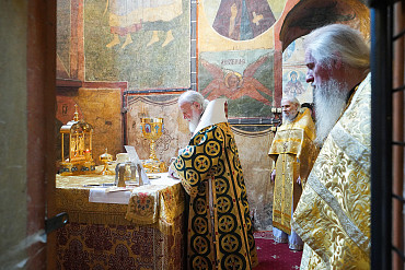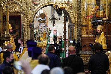 В день памяти святителя Петра Московского Святейший Патриарх Кирилл совершил Литургию в Успенском соборе Московского Кремля