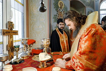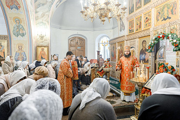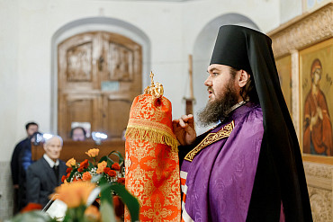 25 ноября епископ Сергиево-Посадский и Дмитровский Фома совершил Божественную литургию в Свято-Духовском храме в д. Дубровке Дмитровского городского округа Московской области.