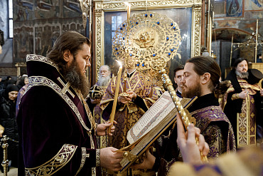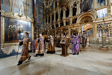 9 марта наместник Троице-Сергиевой Лавры епископ Сергиево-Посадский и Дмитровский Фома совершил Литургию Преждеосвященных Даров в Успенском соборе Лавры.