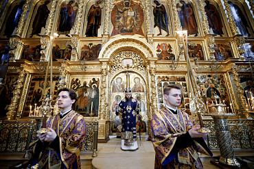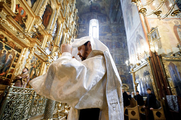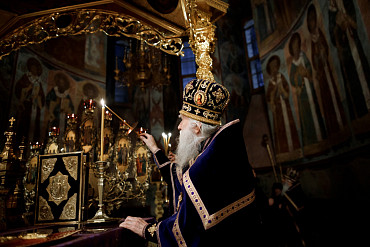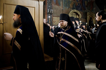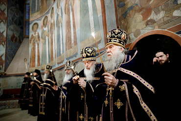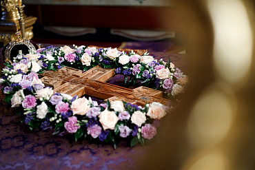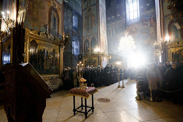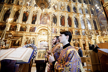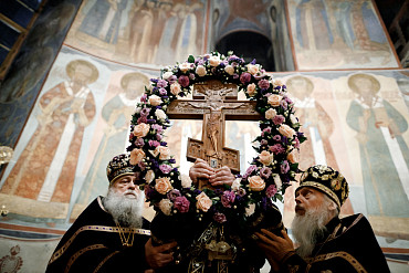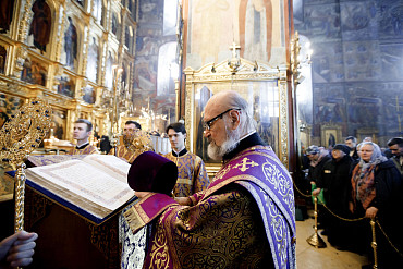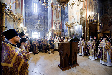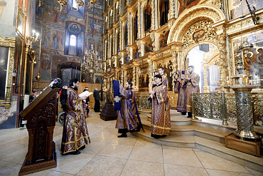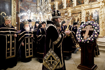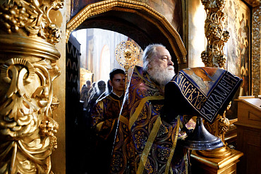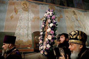 Богослужения Крестопоклонной недели в Успенском соборе Лавры
