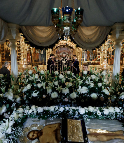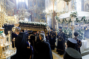 В Троице-Сергиевой Лавре совершили вечерню с чином выноса Плащаницы