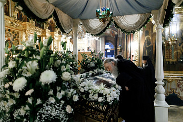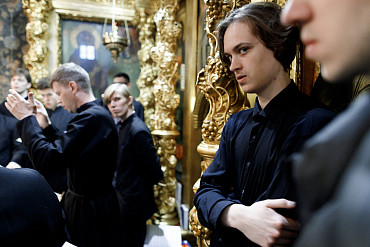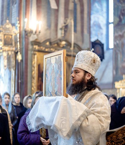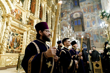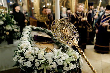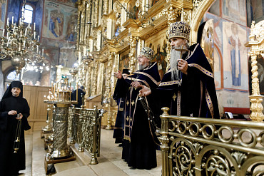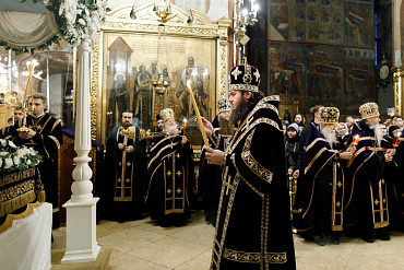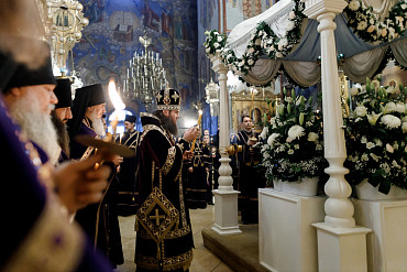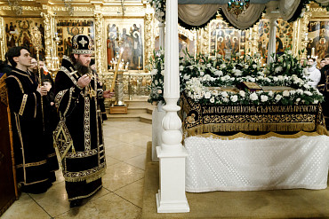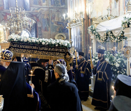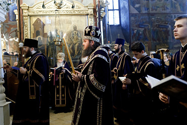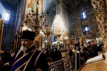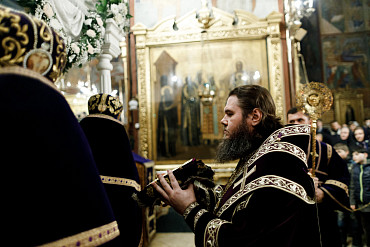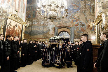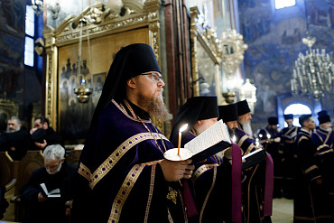 14 апреля в Лавре прошла утреня Великой Субботы с чином погребения Плащаницы. Богослужение в Успенском соборе совершил епископ Сергиево-Посадский и Дмитровский Фома.