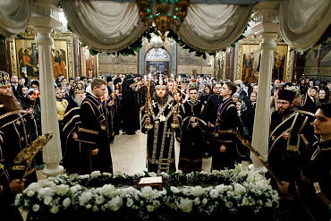В Лавре прошла утреня Великой Субботы с чином погребения Плащаницы
