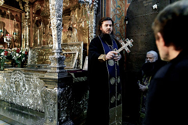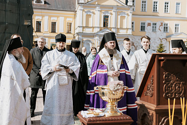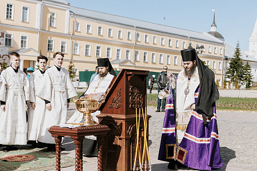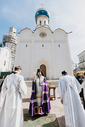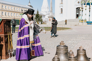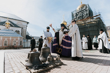 14 апреля, в пятницу Страстной седмицы, наместник епископ Сергиево-Посадский и Дмитровский Фома совершил освящение колоколов Духовского храма Троице-Сергиевой Лавры.
