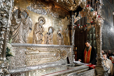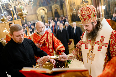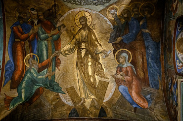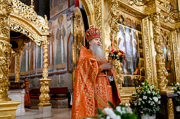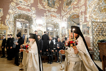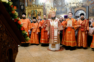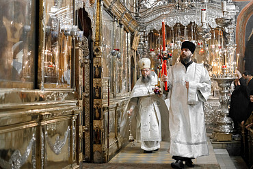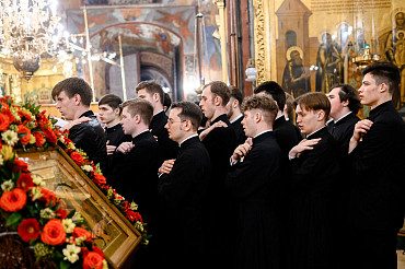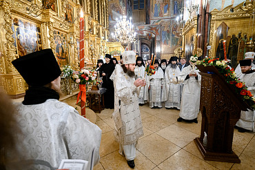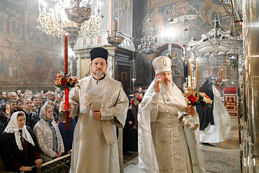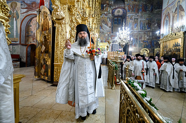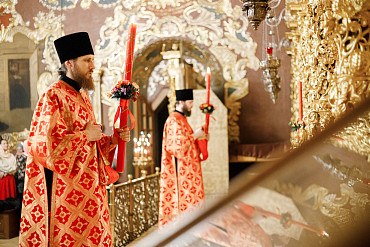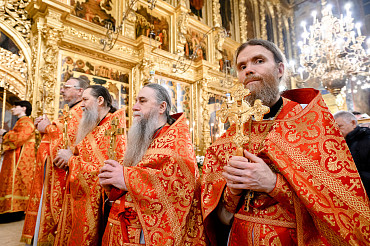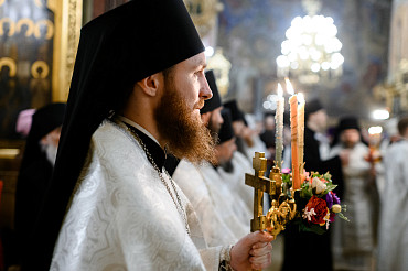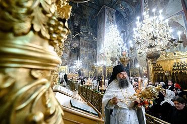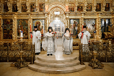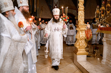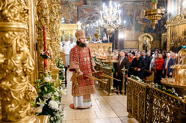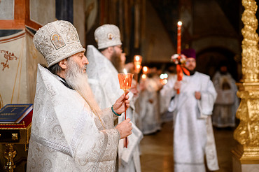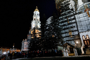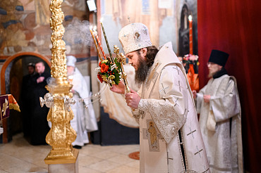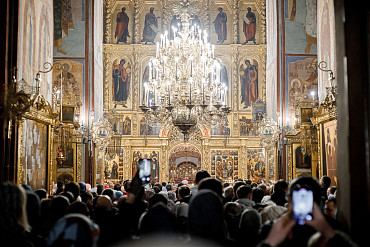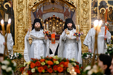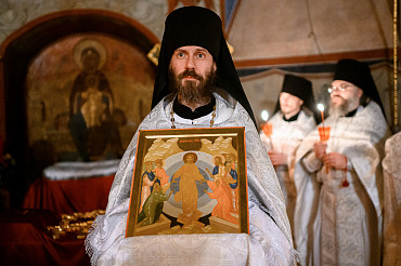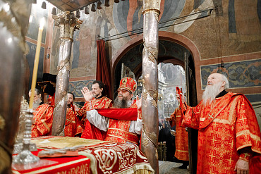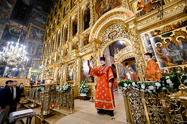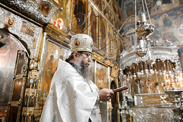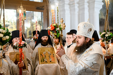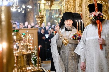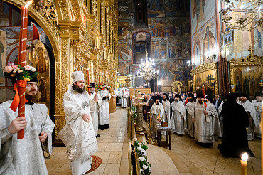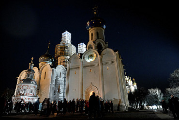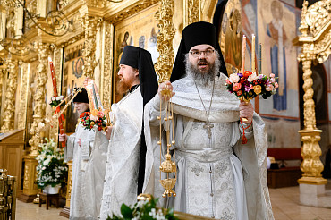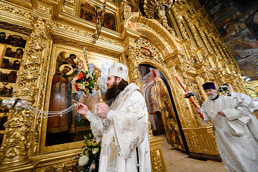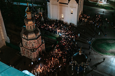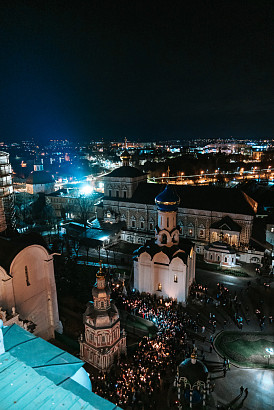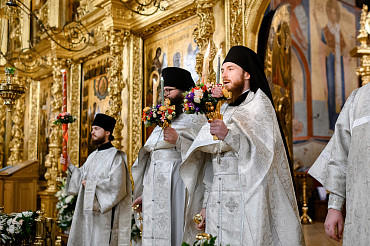 16 апреля в Лавре прошли торжественные пасхальные богослужения. Крестный ход с праздничной утреней и Литургией в Успенском соборе совершил епископ Сергиево-Посадский и Дмитровский Фома.
