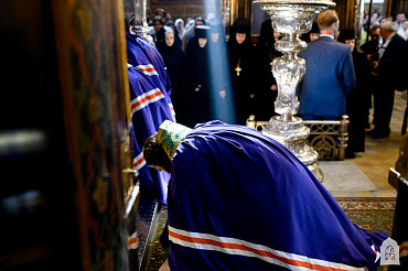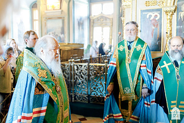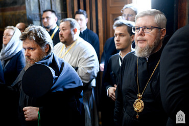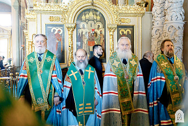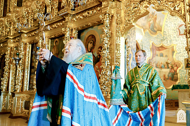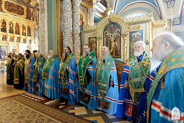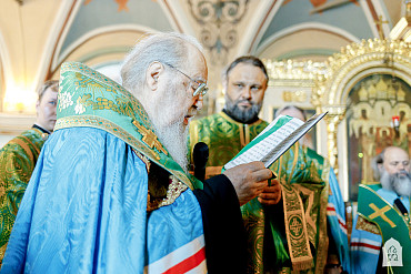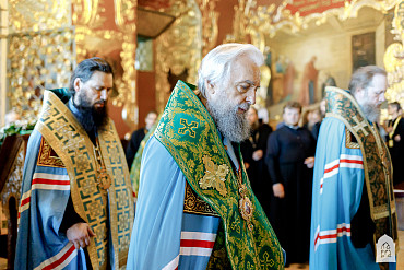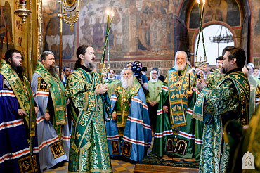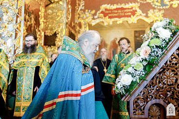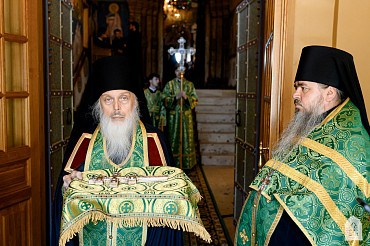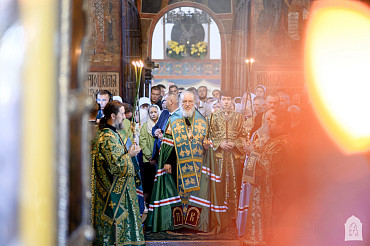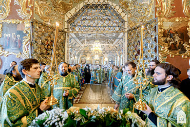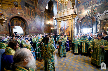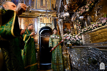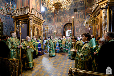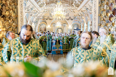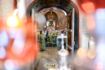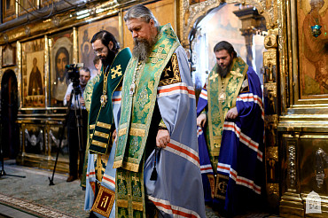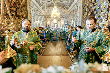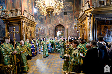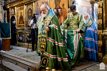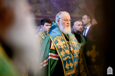 17 июля Святейший Патриарх Московский и всея Руси Кирилл совершил Малую вечернюю с акафистом преподобному Сергию Радонежскому в Троицком соборе Лавры.