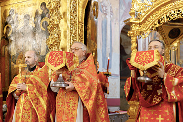 В День Победы в Троице-Сергиевой Лавре совершили Божественную литургию и благодарственный молебен
