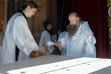 15 июня, в день памяти святителя Никифора, патриарха Константинопольского, наместник Троице-Сергиевой Лавры епископ Сергиево-Посадский и Дмитровский Кирилл совершил Божественную литургию и чин Великого освящения Духовского храма обители.