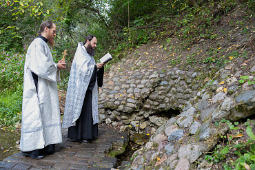 В день памяти прп. Саввы Сторожевского насельники Лавры совершили водосвятный молебен на источнике у стен монастыря.