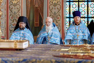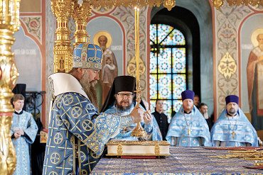 13 и 14 сентября в Гефсиманском Черниговском скиту Троице-Сергиевой обители прошли торжественные богослужения. Литургию в день памяти чудотворного образа возглавил наместник монастыря епископ Сергиево-Посадский и Дмитровский Кирилл. Его Преосвященству сослужил епископ Югорский и Няганский Михаил.