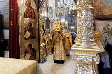 В Неделю святых отец в Лавре совершили Божественную литургию