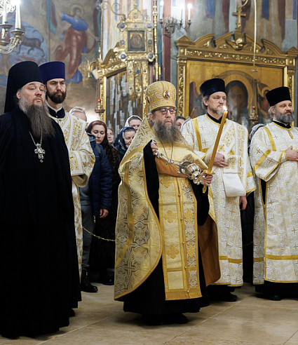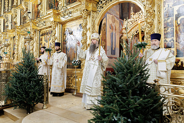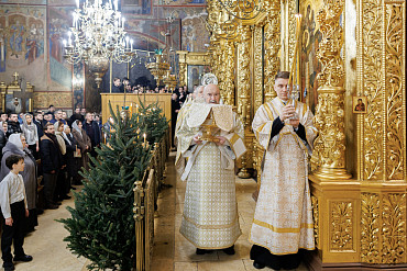 6 и 7 января в Лавре прошли богослужения в честь двунадесятого праздника Рождества Христова. Всенощное бдение и ночную Литургию в Успенском соборе совершил епископ Сергиево-Посадский и Дмитровский Кирилл.