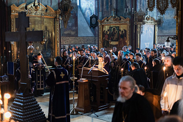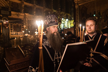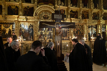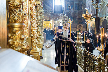 17 апреля в Лавре прошли уставные богослужения Великой Пятницы с чтением двенадцати Евангелий. Службу в Успенском соборе совершил епископ Сергиево-Посадский и Дмитровский Кирилл.