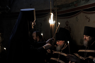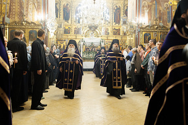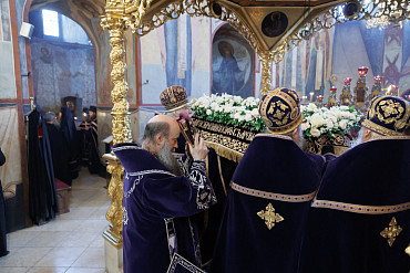 18 апреля в Лавре прошли уставные богослужения Великой Пятницы и утреня Великой Субботы. Службу Царских часов в Успенском соборе возглавил архим. Евстафий (Солнцев). Вечерню с выносом Плащаницы и утреню с чином погребения совершил епископ Сергиево-Посадский и Дмитровский Кирилл.