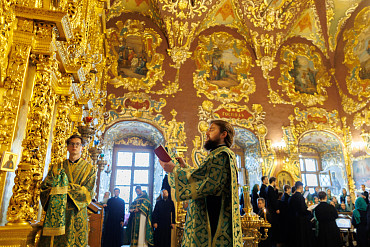 7 и 8 октября в Лавре прошли праздничные богослужения, на которых молитвенно почтили прп. Сергия Радонежского. Всенощное бдение в Троицком соборе и Литургию в Успенском соборе совершил Патриарх Московский и всея Руси Кирилл.