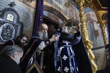 25 февраля в Лавре прошли богослужения среды первой седмицы Великого поста. Литургию Преждеосвященных Даров в Успенском соборе возглавил архим. Макарий (Веретенников).